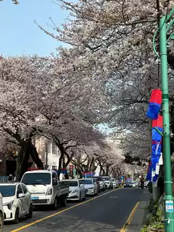 Walking along Jeju's streets and coastlines, every sight is dominated by pink hues! Whether it's day or night, the romance is different yet captivating. During the day, sunlight filters through the cherry blossom trees, making the petals shimmer; at night, the cherry blossoms under the streetlights exude a mysterious and enchanting vibe. The most unforgettable moment was witnessing 'cherry blossom snow' by the seaside—when the sea breeze blows, clusters of cherry blossoms gently fall, with pink petals contrasting against the deep blue ocean, creating a scene so beautiful it feels unreal!