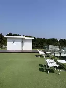 Sanbangsan Cafe with a great view of Sanbangsan Mountain and the ocean