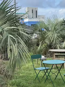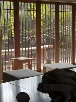 Cafe Gugugu is comprised of three buildings: the main building, annex, and prop shop, renovated from a traditional Jeju house. Each space has a quiet and cozy atmosphere, making it perfect for reading a book or contemplating alone. The green garden outside the window will soothe your mind.