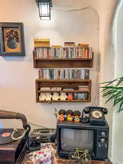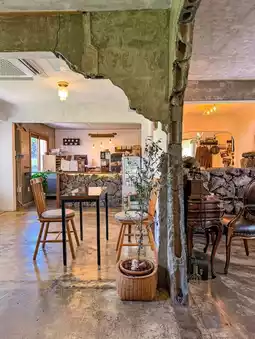 Throughout the cafe, you'll find vintage items and decor that evoke a sense of old-fashioned charm, including unique displays like Jeju's traditional diver tools and black-and-white photographs, offering a distinctive experience. One highlight was the peanut schpanner coffee made with Udo Island peanuts, which combined sweet cream, nutty peanut flavors, and rich coffee for a delightful taste.