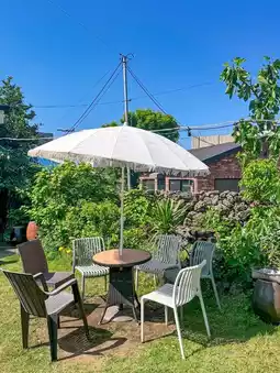 Jeju's Yongso Dam Cafe features a spacious outdoor garden and multiple tables inside, making it a great spot to visit with family or friends during your trip. Open daily from 10 AM to 10 PM, the cafe operates year-round, offering convenience for visitors. If you visit in May, you'll be greeted by vibrant red roses and daisies, and you can enjoy your tea or coffee at outdoor tables while basking in the warm sunlight. The outdoor area also includes a photo zone, with a mirror designed to resemble Jeju Island and the phrase 'Hayoung Gobda' (meaning 'very beautiful' in Jeju dialect) adding a local touch to the atmosphere.