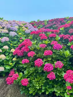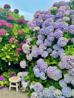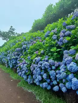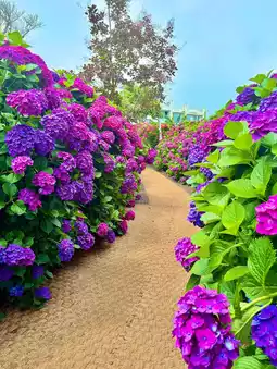 Go through the cafe door and you will see the 6,500-foot hydrangea garden. The garden is full of hydrangeas, forming hydrangea walls, hydrangea tunnels, and hydrangea gardens.