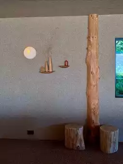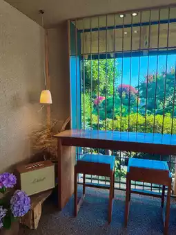 The design of logs and windows in the cafe makes the most beautiful corner of the courtyard full of wild flowers in Soomdo the background of the cafe. From the other side of the cafe, you can see the sunset at dusk when you open the door to the open-air seats.