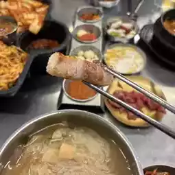 This restaurant serves amazing samgyeopsal! โจ๏ธ They also serve yukhoe! ๐๐ผ Don't forget to order the naengmyeon (cold noodles) and doenjang jjigae (soybean paste stew)! For a finale, I recommend the bokkeumbap. ๐