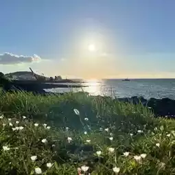 There's a terrace outside where you can enjoy your sashimi, and the sunset is beautiful.