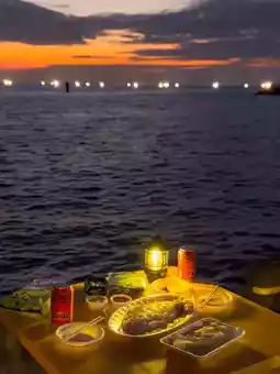 And after the sun sets, the lights of the boats floating on the night sea are 🚢✨
