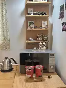 The accommodation boasts a minimalist yet cozy atmosphere. 🛋️🪞 The white walls, wooden interior, and cozy bedding all combine to create the feeling of renting an entire cottage in the Jeju forest. Open the window and you'll be greeted by a verdant forest, and in the morning, you'll wake up to the sound of birdsong. 🌤️🌿 At night, it's perfect for ending the day with a warm cup of tea under the soft lighting. 🍵💫