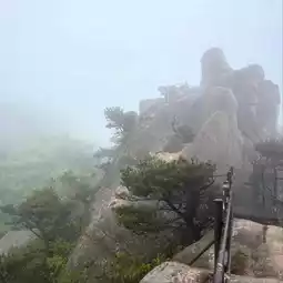 #summervacay Climbed up to Cheonhwangbong Peak in Wolchulsan and honestly? It felt like stepping into another world. The hike starts off pretty chill, some forest, stairs, the usual, but once you hit the higher parts, it’s game on. Rocky paths, crazy stone formations, and suddenly you’re literally in the clouds. Like, full white-out, can’t-see-10-feet-ahead kinda vibe. It was surreal.