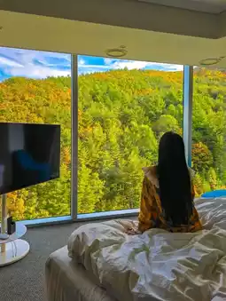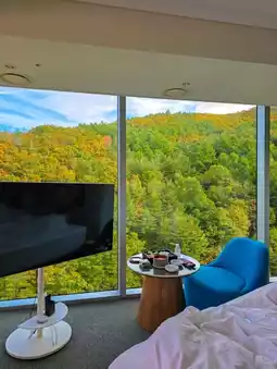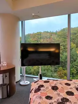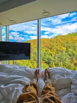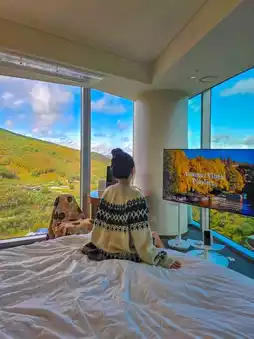 Since it’s a corner room with windows on two sides, every glance offered a view of mountains painted in green, yellow, and orange hues! It was like having a 'window frame' masterpiece🍂