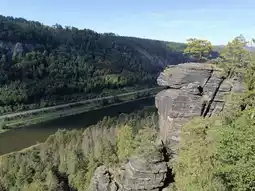 For those seeking high-altitude views without the crowds, the viewpoint from the Decínský Sněžník (Hoher Schneeberg) lookout tower is a fantastic alternative. As the highest mountain in the region, the easy 40-minute walk up to the tower is manageable for families. From the top, the panoramic view stretches across the entire national park and well into the German side, providing a spectacular perspective of the sprawling forest, the sandstone plateaus, and the meandering Elbe River valley.