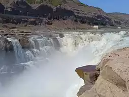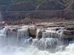 🇨🇳 "Hukou Waterfall" (Hukou Waterfall) means "mouth of the kettle" because the headwaters of the Yellow River are 300-400 meters wide, but the point of Hukou Waterfall is relatively narrow, only 20-30 meters, causing a large amount of water to be compressed at this point and flowing down about 20 meters, making it look like the "mouth of the kettle". Hukou Waterfall is also an AAAAA-level tourist attraction in China.