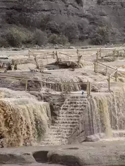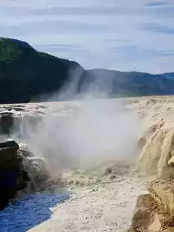 Standing on the banks of Hukou Waterfall, the surging waters of the Yellow River cascade down with thunderous momentum, creating a mist that rises and swirls. The massive waves crash against the rocky walls, sending droplets flying with the wind, striking one's face and leaving a lasting impression. This is the most magnificent chapter of the Yellow River, a display of overwhelming power that stirs the soul.