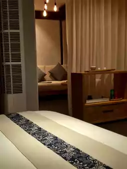 White porcelain tea sets, Raven’s custom drip coffee, local Pu’er tea, azure bathrobes, Appelles’ wood-based toiletries