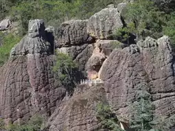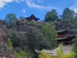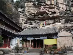 The remaining eight caves are located in Shiziguan and Shadengqing respectively, and are also part of the Shibaoshan Grottoes. Not far from the Shibaoshan Scenic Area, there is a Hanging Baoxiang Temple, a Taoist temple built on a towering cliff, which is quite high, steep and strange.