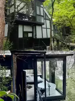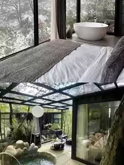 🙊The 270-degree floor-to-ceiling windows offer a panoramic view🌳, and you can see the forest🌲, the air is super fresh, and lying in the mountains and forests makes you feel instantly healed~