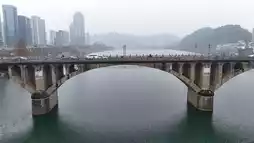 The Baisha Bridge is located over the Xin'an River in Jiande City, Zhejiang Province. It is a magnificent bluestone bridge built in 1960. The bridge is 362 meters long, 24 meters high, and 11 meters wide. The main bridge has six arches, each with a main span of 50 meters, forming a slight arc. The railings are carved with 256 large and small stone lions, each with a unique and lifelike expression.