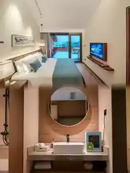 The hotel offers over 200 guest rooms, each an independent ecological theater. The boathouse rooms offer a 180° panoramic view of the river, and the starry sky bathtubs reflect the Milky Way. The treehouse rooms are suspended 12 meters high within a camphor forest, where smart skylights allow the sounds of birds and morning sunlight to serve as a natural wake-up call. Families with children can choose the Loft River View Room, which features separate upper and lower levels with a fun children's tent and Kang Er Xin antibacterial bedding.