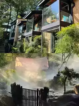 2️⃣The treehouse is super photogenic! The entire homestay room has floor-to-ceiling windows 🏡, so you can directly feel the outdoor forest 🌳. This healing feeling is simply amazing! Open the balcony door and there is a private hot spring, one room with one private hot spring! You can soak in it 24 hours a day without time limit! This is so nice!
