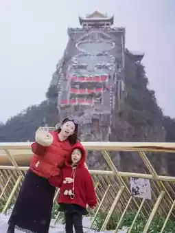 Five escalators take you directly to an altitude of 1,000 meters! Standing on the "Hand of the Sky," you can see the overlapping mountains. The children were so excited that they jumped up and down, saying, "We touched the clouds!"