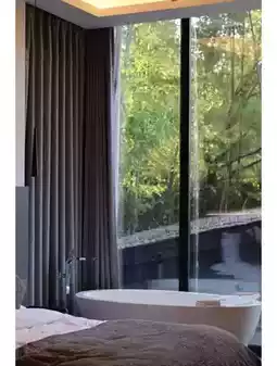 Mountain breeze carrying the scent of grass and trees passes through floor-to-ceiling windows