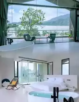 The hotel offers just 19 rooms, starting from 30 square meters. The interiors continue the zen aesthetic, with custom rattan furniture, linen bedding, and handcrafted pottery creating a natural feel, while smart toilets, Dyson hair dryers, and Marshall speakers enhance comfort. Windows frame views of the misty Xin'an River and distant mountains. Each room features floor heating and central air conditioning, making autumn and winter stays as warm as spring. The bathtubs face floor-to-ceiling windows, allowing guests to soak while watching the river dance with the sunset glow—the ultimate healing experience.