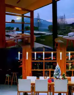 Xixia Qingye is hidden in the ancient Meicheng Town by the Xin'an River, converted from an old factory. The designer embraced the concept of "blank space," blending weathered rammed earth walls, exposed wooden beams, and minimalist cement lines to create a tranquil, zen-like atmosphere. The public areas feature gray, white, and natural wood tones, complemented by dry landscape gardens and floor-to-ceiling glass walls that blur the boundaries between indoors and outdoors. Every corner feels like a frame from a film.