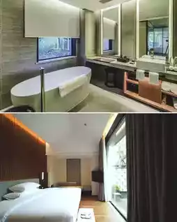 As the debut property of New Century's luxury resort brand "Fangwai," the hotel was designed by the China Academy of Art team. Embracing the philosophy of "a sanctuary beyond the mundane," it masterfully blends traditional Zen aesthetics with modern minimalism. Black-tiled, white-walled buildings cascade along mountain contours, their gray-white palette harmonizing with the natural landscape. Floor-to-ceiling windows frame picturesque views, while interplaying indoor-outdoor light reveals the profound artistry of Eastern negative space.