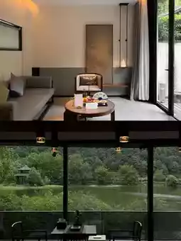 The entire hotel feels like a hidden resort nestled by the mountains and water. You need to take a 15-minute boat ride to enter, ensuring privacy and tranquility. Most rooms are villa-style, well arranged, and the family stayed in the Listening to Rain Suite, which has a separate living room, a small courtyard, and a 2-meter extra-large bed that can be slept across~ Truly, we listened to the rain here, peaceful and comfortable.