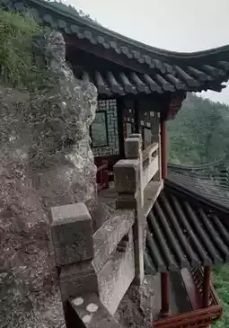 - Layout and Structure: The temple consists of the Main Hall, Incense Pavilion, Heavenly Walkway, and Ksitigarbha Hall. The Main Hall, the temple's centerpiece, houses statues of Guanyin (Avalokitesvara) and other Buddhist deities. The Incense Pavilion is exquisitely crafted and compact. The Heavenly Walkway, built along the cliff, connects various structures like an aerial corridor, offering thrilling and exhilarating walks as if strolling among clouds. The Ksitigarbha Hall is solemn and dignified, with a lifelike statue of Ksitigarbha Bodhisattva.