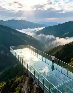 Standing on the glass viewing platform, with a deep abyss beneath your feet and a rolling sea of clouds before your eyes, it’s so stunning it makes your legs weak! The mountain breeze is cool, and the ancient Taoist relics add a profound sense of history—no filters needed for photos! It’s a hidden gem with few visitors, perfect for avoiding crowds during holidays.