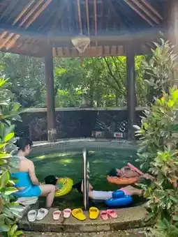 Our little one tends to catch a cold after staying too long in the cold pool, but there’s a hot spring pool right next to it. Jump in for 10 minutes, and they’re recharged and ready to go again.