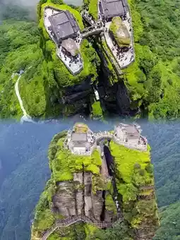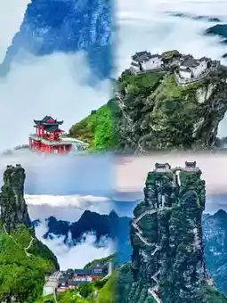 Also known as "New Golden Summit," the peak is steep and surrounded by clouds and mist, just like a fairyland. The upper part is divided into two, connected by a sky bridge, with a temple built on each side. One side is dedicated to Sakyamuni Buddha, and the other side is dedicated to Maitreya Buddha.🤗