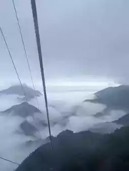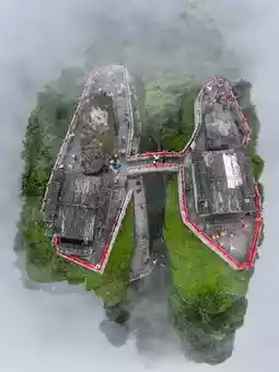 First, visitors take an eco-friendly shuttle to enter the scenic area, followed by a cable car ride up the mountain. As the cable car ascends, the misty clouds and picturesque distant mountains reveal the mysterious aura of Fanjing Mountain.