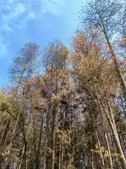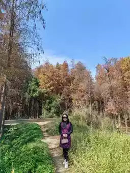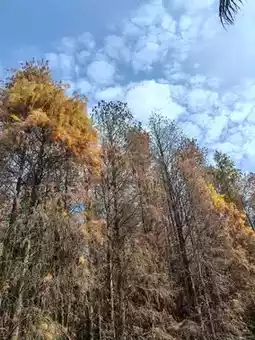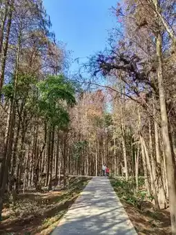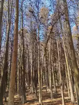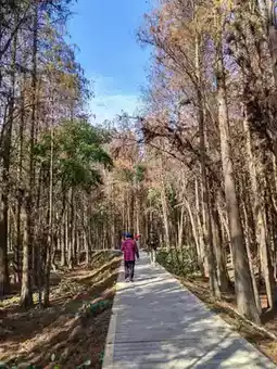 2. There are several bald cypress forests in the park. Photos look great on sunny days, with blue skies, white clouds, and red trees. Wear striped clothes for the best effect.