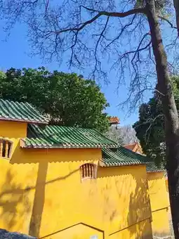 3. The yellow walls of the temple are great for taking photos. The light and shadows under the trees are very Chinese and beautiful.