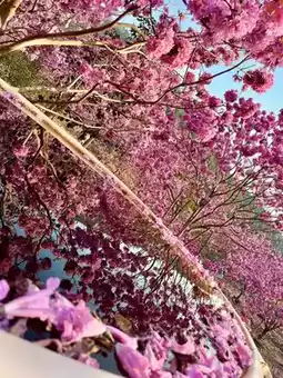 Green and beautiful Ecological Park: trees full of flowers bathed in the sun, thousands of flowers on the branches intoxicating the heart.