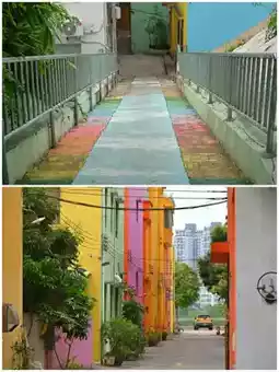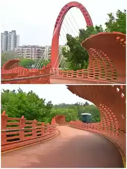 Fushan Sky Bridge is the most beautiful and longest bridge I've ever walked on. It crosses the river, passes through roads, and leads all the way to the forest. The bridge's design is very unique. You can walk along the bridge into the mountains and the Baishuidai Scenic Area. Below the bridge is Rainbow Village, with its colorful buildings and rainbow stairs, as well as large basketball and tennis courts, even with shower rooms, which is very thoughtful. Nearby, there are also Fushan Park, Children's Park, and the Baishuidai Scenic Area.
