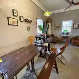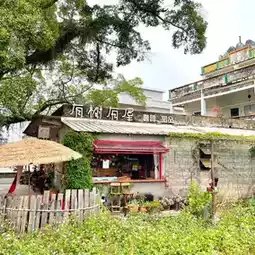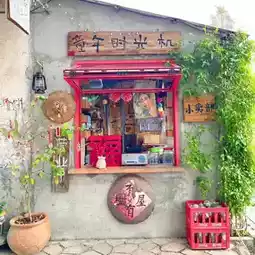 #中山景点 This cafe is located outside the Chikan Scenic Area, just across the road from the scenic area's wall. The cafe's indoor and outdoor spaces are cleverly decorated with old objects from rural life, and being in it feels like returning to the scenes of childhood. The old objects in the room are probably so old that people who have seen them are probably over 35 now. There are old sewing machines, picture books, old suitcases in the style of the Republic of China, posters of Hong Kong stars from the 1980s, etc. The modern coffee machines and camping chairs form a sharp contrast with the old objects.