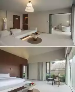 The hotel has only 14 rooms, divided into 8 room types, with an area of 40m and up, each with an independent courtyard design. The bedroom and bathroom are separated into wet and dry areas, and the bathtub is set by the window, with rice fields and distant mountains as the background when taking a bath. Some room types have private viewing platforms where you can enjoy the mountain sunset.