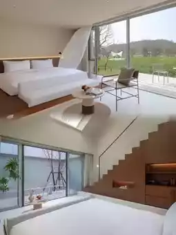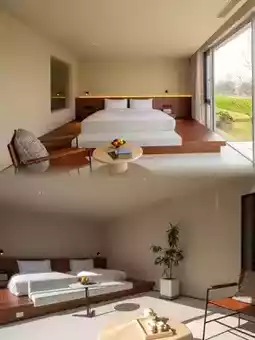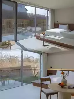 - Room Facilities: The property offers 14 guest rooms 🛏️ across 8 different room types, each starting from 40 square meters for spacious comfort. The interiors are minimalist yet elegant, with warm wood tones creating a cozy atmosphere 🏠. Modern amenities include central air conditioning, underfloor heating, a minibar, air purifier, and Marshall speakers, ensuring both natural beauty and home-like convenience 🌟.