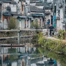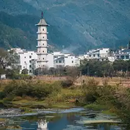 The village's reflection on the tranquil pond and the distinctive silhouette of the horse-head walls of Whipai architecture create a scene reminiscent of a traditional ink painting, offering a quiet beauty that makes you pause and admire.