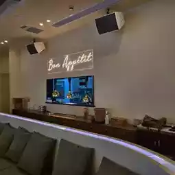 The restaurant is decorated beautifully with many country flags and football club icons. The light and colors are bouncing perfectly.☀️