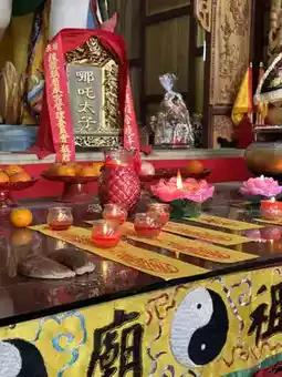 The Nezha Ancestral Temple, built in ancient times, has undergone numerous renovations, yet retains its majestic architecture. With its red walls, green tiles, carved beams, and painted rafters, the temple boasts a majestic exterior. Inside, a statue of the Third Prince Nezha, imbued with heroic spirit and a fierce expression, wields a flaming spear, and rides a wind-fire wheel, embodying the power of youthful bravery and righteous guardianship.