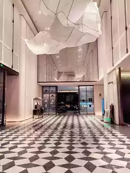 Next is the public area. French retro aesthetics are the main theme of the design. Champagne gold complements the turquoise tones, luxury and freshness complement each other, and the exquisite and delicate design is warm and simple. At the same time, the hotel is inspired by the ancient Shu king's palace, integrating the elegance of Shu into the architectural texture. As a result, the modern and exquisite design has a touch of mystery and solemnity of ancient Shu culture.