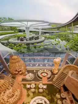 A short walk east leads to the main Shiyuan Expo pavilion, with Jiangxi River Wetland hosting 32 migratory bird species along the way. Westward, the "Sichuan Scroll" greenway connects directly to Danjingtai Scenic Area by bike. Don't miss the morning mist walk along the hotel's exclusive "Fog Forest Trail."
