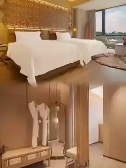 The waterfall-view room he booked features floor-to-ceiling windows framing the man-made waterfall 100 meters away as a natural dynamic mural. Specially designed triple-laminated glass ensures stunning views without noise pollution. The smart lighting system guarantees the waterfall always appears vividly colorful like an oil painting.