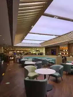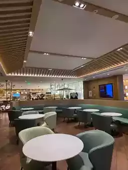 The lounge is cleverly divided into two main areas: for relaxation and for food. The relaxation area has comfortable chairs, you can calmly work on your laptop or just relax before the flight. WiFi works reliably, there are enough sockets.
