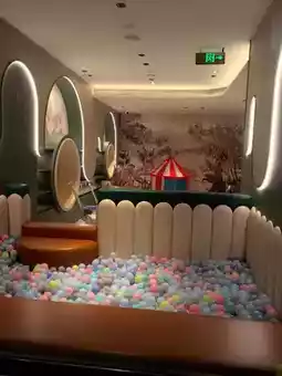 The first floor has a children's playground with slides, small tents, and a ball pit, keeping kids entertained for hours without tiring out the parents. There's also a 24-hour gym nearby.