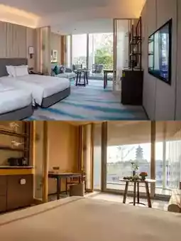 A Chinese aesthetic hotel with its own garden charm! Lake-view rooms frame the entire Nanhu Lake through floor-to-ceiling windows. The courtyard features rockeries and water features, creating picturesque scenes at every turn, and even the hydrangeas at the corners bloom gently in late May. Families with kids, take note! Indoor heated pool + kid-friendly activities + children's breakfast packages, and the butler thoughtfully prepares little gifts for the little ones 🎁