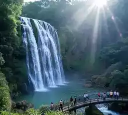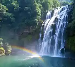 The scenic area has well-maintained walkways and viewing platforms for visitors. The main waterfalls include Feihong Waterfall, Yinhe Waterfall, and Luojitian Waterfall.